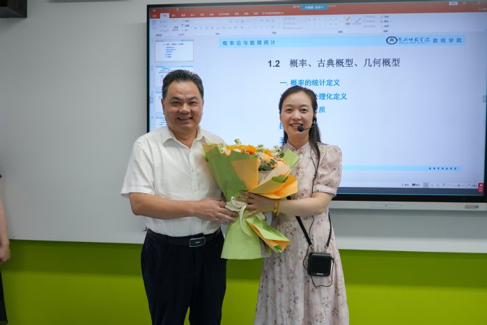 校领导代表学校向几位教师致以节日祝福,对教师们坚守岗位、恪尽职守的奉献精神给予充分肯定,勉励大家要全面贯彻党的教育方针,以教育家精神为引领,落实立德树人根本任务,牢记为党育人、为国育才的使命,从日常做起、从点滴抓起,让人工智能赋能教学创新,上好每一堂课、育好每一个人,为学校高质量发展作出新的贡献。